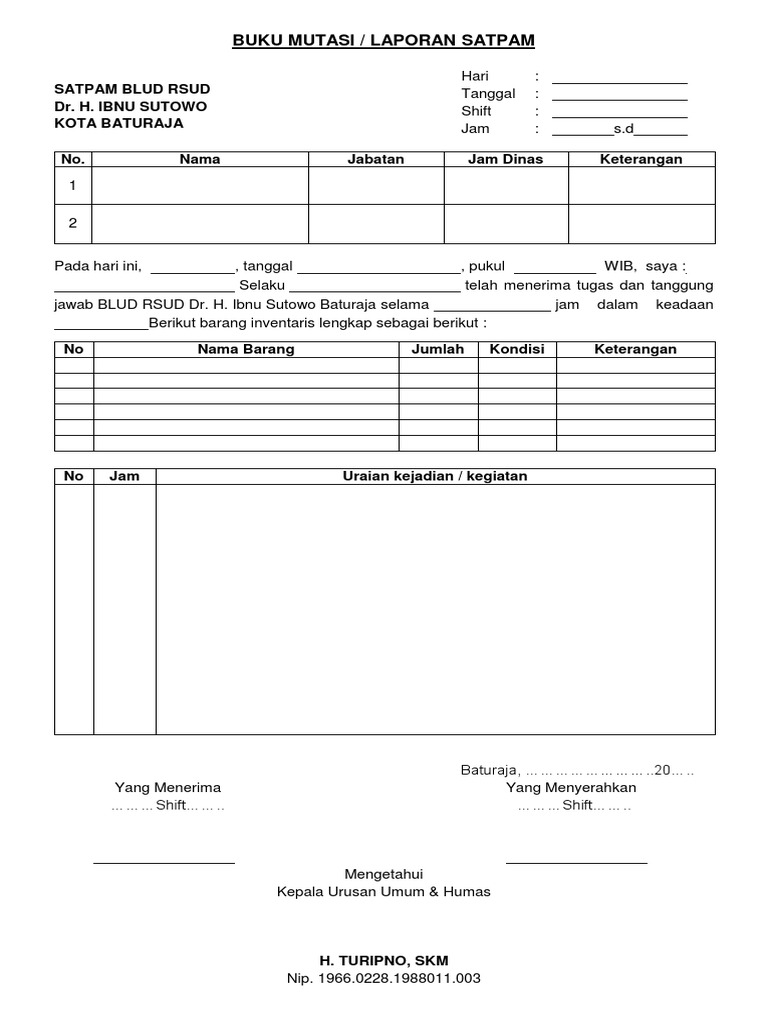 Laporan Harian Unit Satpam Pdf